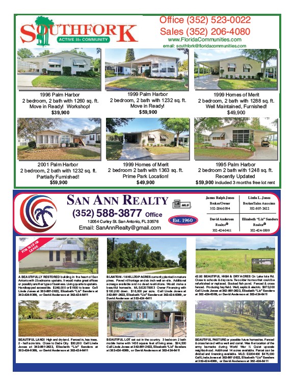 Call Linda Jones at 352-807-2622, Elizabeth “Liz” Sanders