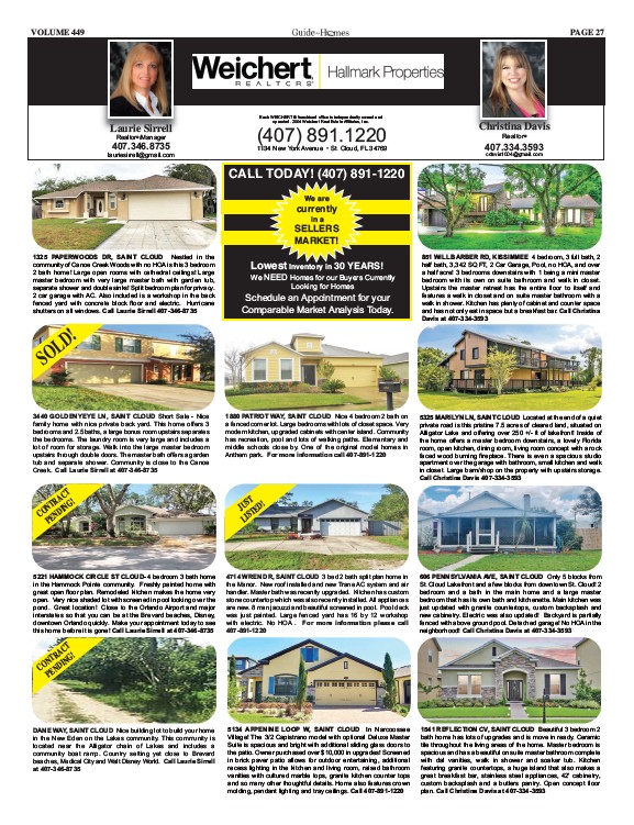 neighborhood! Call Christina Davis at 407-334-3593
