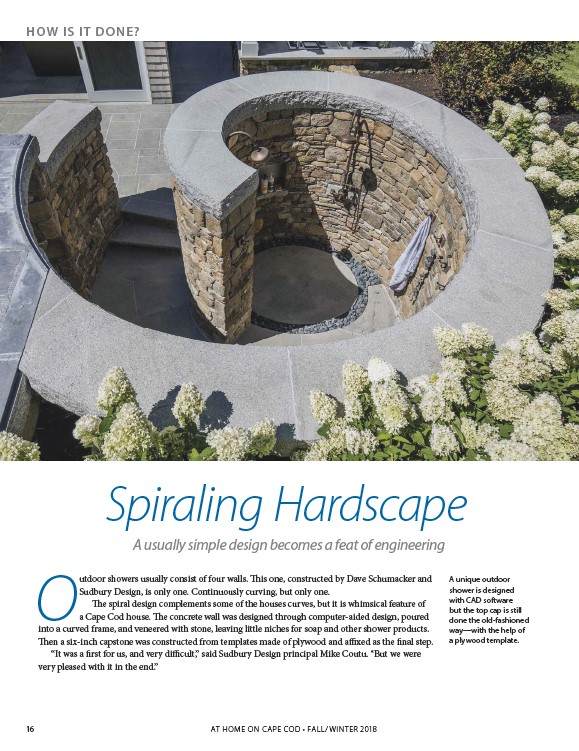 a Cape Cod house. The concrete wall was designed through computer-aided design, poured