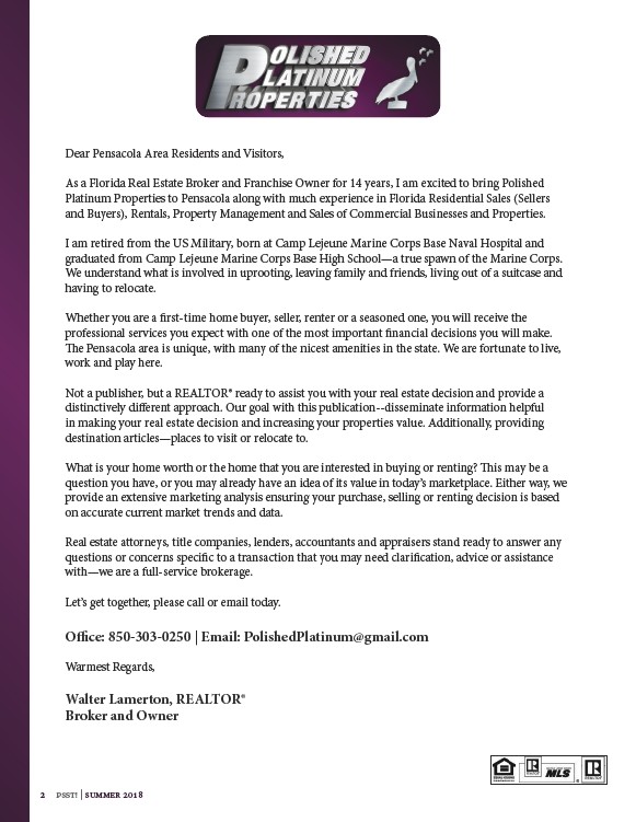 Platinum Properties to Pensacola along with much experience in Florida Residential Sales (Sellers