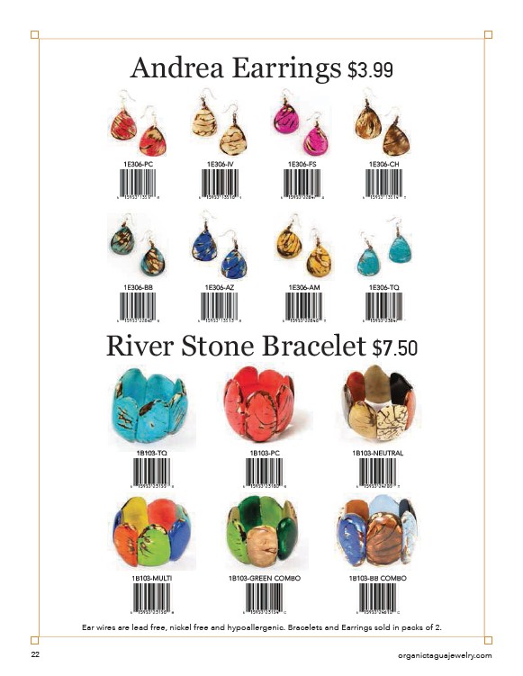 Ear wires are lead free, nickel free and hypoallergenic. Bracelets and Earrings sold in packs of 2.