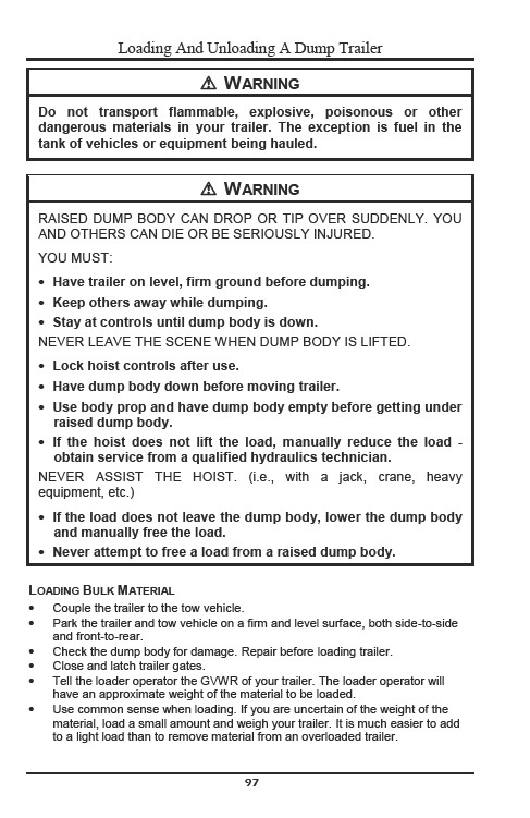 NEVER LEAVE THE SCENE WHEN DUMP BODY IS LIFTED.