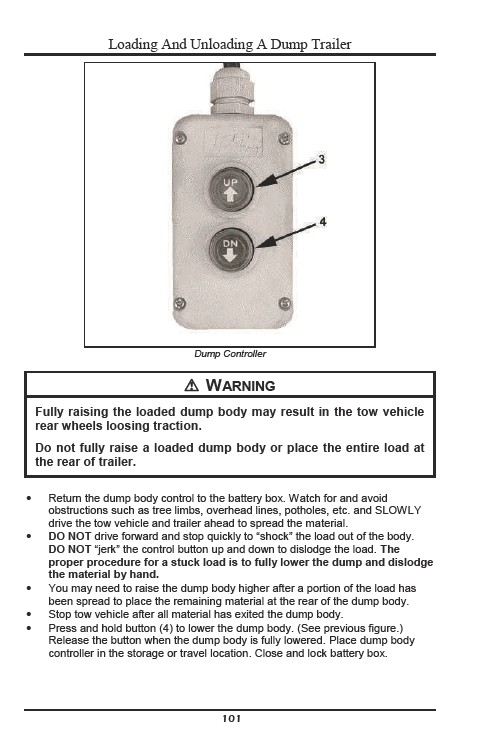 proper procedure for a stuck load is to fully lower the dump and dislodge