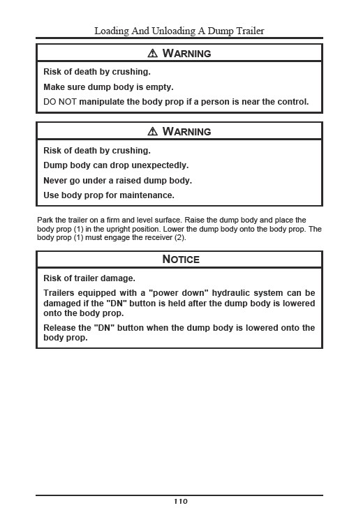 Park the trailer on a firm and level surface. Raise the dump body and place the