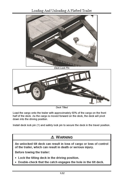 An unlocked tilt deck can result in loss of cargo or loss of control