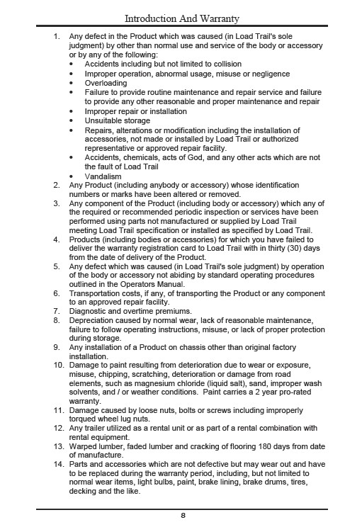 5. Any defect which was caused (in Load Trail's sole judgment) by operation