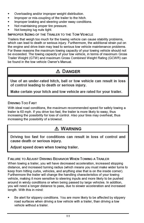 trailer is 60 mph. If you drive too fast, the trailer is more likely to sway, thus