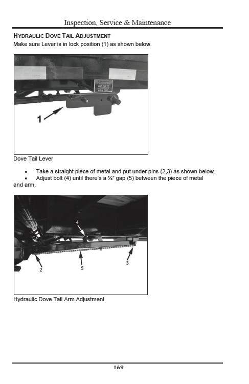 Hydraulic Dove Tail Arm Adjustment