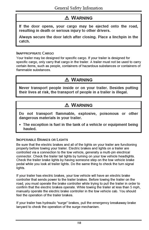 specific cargo, only carry that cargo in the trailer. A trailer must not be used to carry