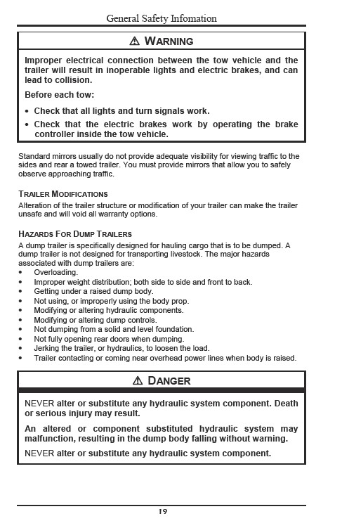 HAZARDS FOR DUMP TRAILERS