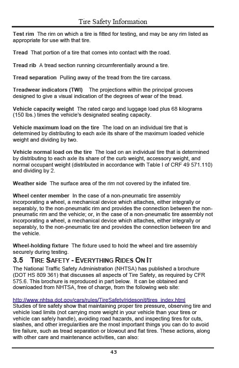 (DOT HS 809 361) that discusses all aspects of Tire Safety, as required by CFR
