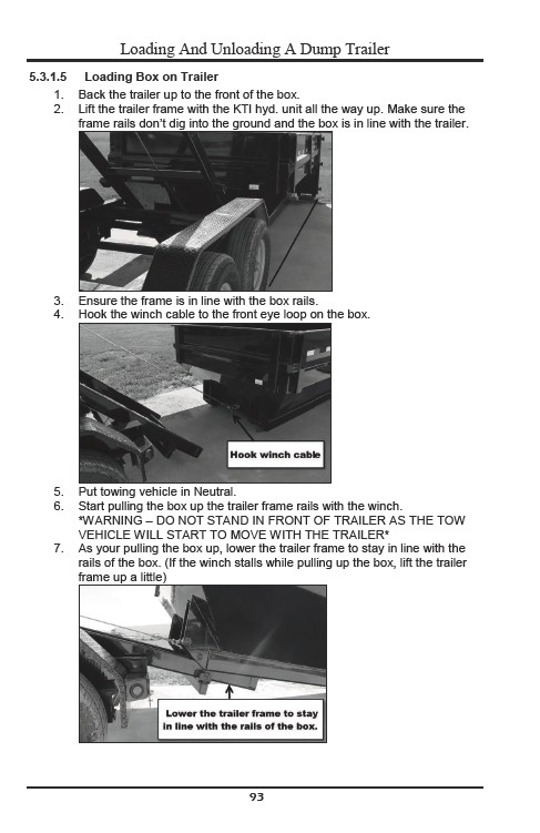 rails of the box. (If the winch stalls while pulling up the box, lift the trailer