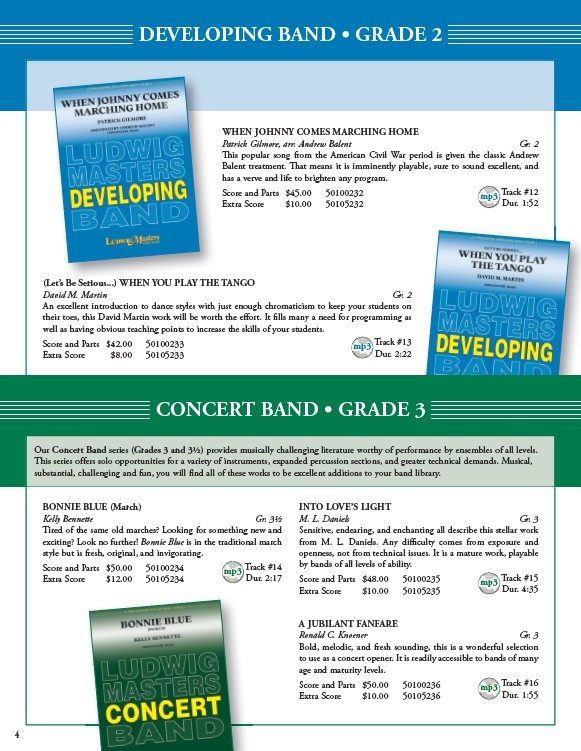 Our Concert Band series (Grades 3 and 3½) provides musically challenging literature worthy of performance by ensembles of all levels.