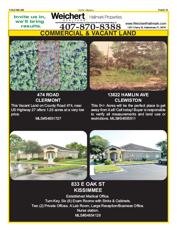 results. 1001 Cherry St. Kissimmee, FL 34741 Each WEICHERT® franchised office is independently owned and operated. 2004 Weichert Real Estate Affiliates, Inc.
