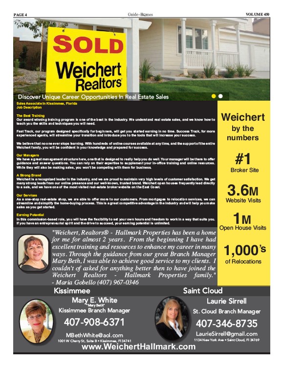 many strong leads from our online presence and our well-known, trusted brand. Weichert open houses frequently lead directly