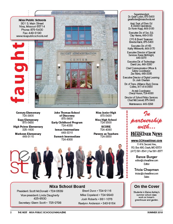 2 THE NEST NIXA PUBLIC SCHOOLS MAGAZINE SUMMER 2018 Nixa Public Schools