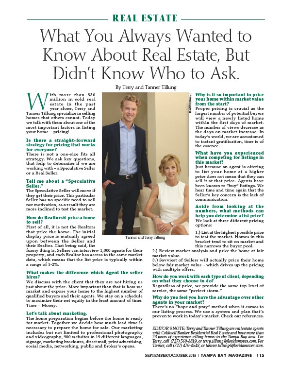 23 years of experience selling homes in the Tampa Bay area. For