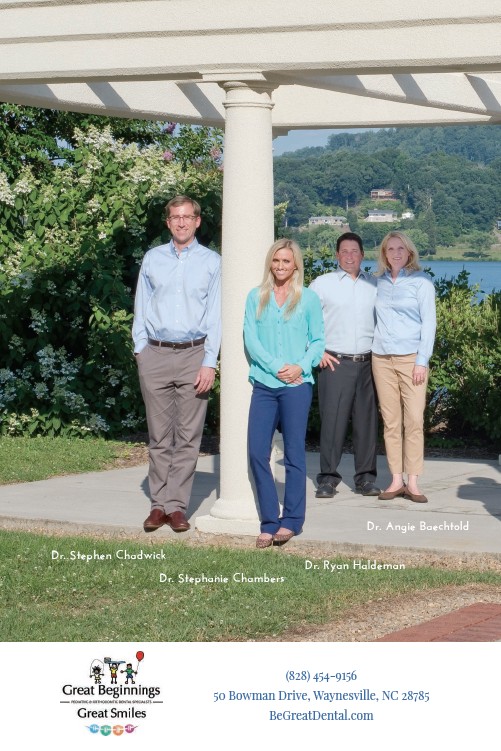 (828) 454-9156 Dr. Angie Baechtold 50 Bowman Drive, Waynesville, NC 28785 BeGreatDental.com Dr. Stephen Chadwick Dr. Stephanie Chambers Dr. Ryan Haldeman