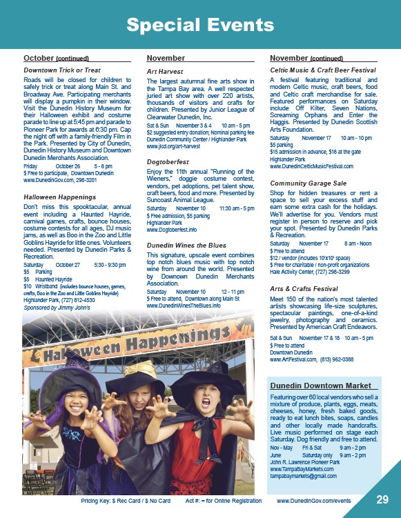Pricing Key: $ Rec Card / $ No Card Act #: = for Online Registration www.DunedinGov.com/events 29