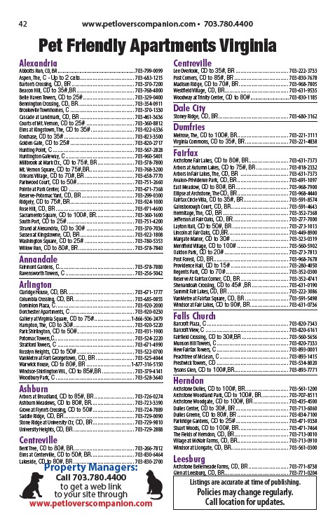 Millbrook at Mark Ctr., CD to 75#, BR ....................... 703-578-7800