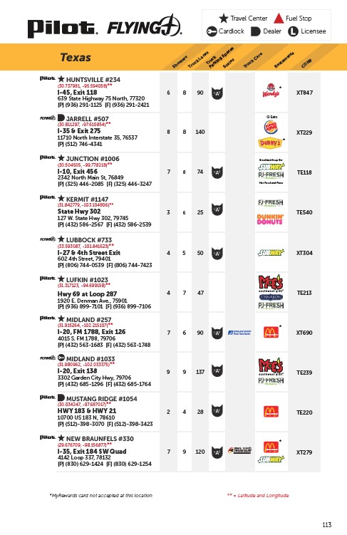 *MyRewards card not accepted at this location ** = Latitude and Longitude