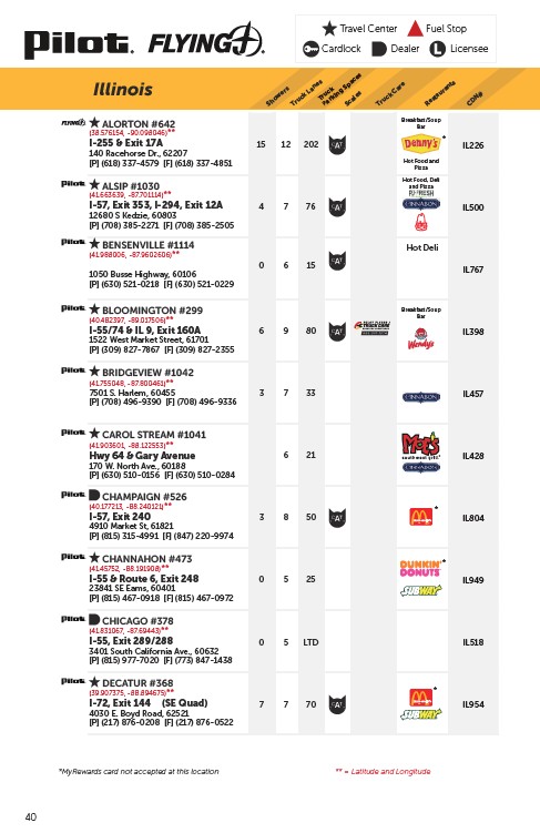 *MyRewards card not accepted at this location ** = Latitude and Longitude