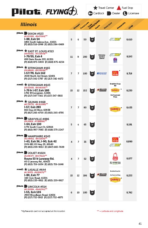*MyRewards card not accepted at this location ** = Latitude and Longitude
