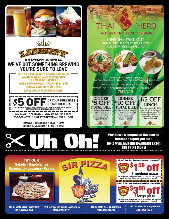 S. Main St. High Point, Asheboro & Randleman locations ONLY