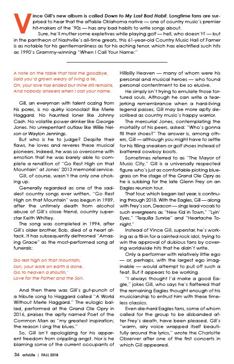 ince Gill’s new album is called Down to My Last Bad Habit. Longtime fans are sur-
