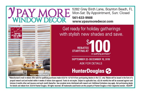 for details and rebate form. ©2018 Hunter Douglas. All rights reserved. All trademarks used herein are the property of Hunter Douglas or their respective owners. 18Q4VPP
