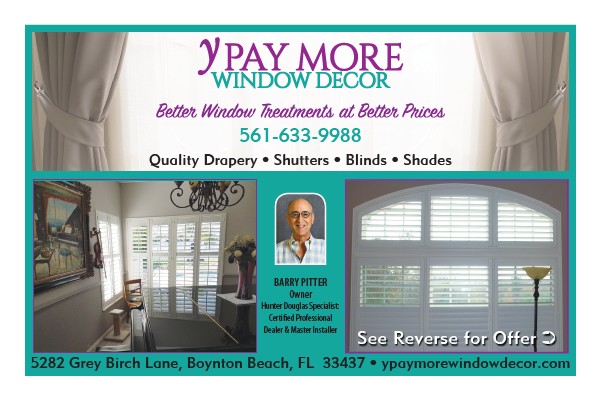 5282 Grey Birch Lane, Boynton Beach, FL 33437 • ypaymorewindowdecor.com