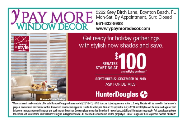 for details and rebate form. ©2018 Hunter Douglas. All rights reserved. All trademarks used herein are the property of Hunter Douglas or their respective owners. 18Q4VPP