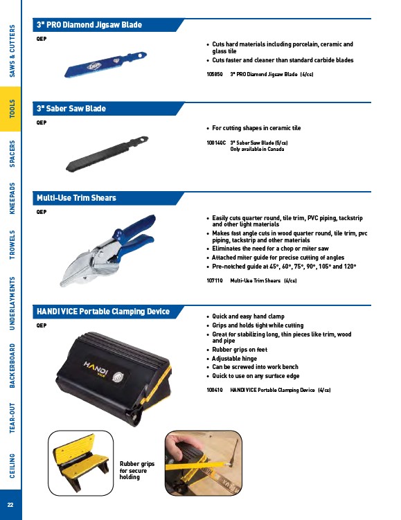 CEILING TEAR-OUT BACKERBOARD UNDERLAYMENTS TROWELS KNEEPADS SPACERS TOOLS SAWS & CUTTERS 22
