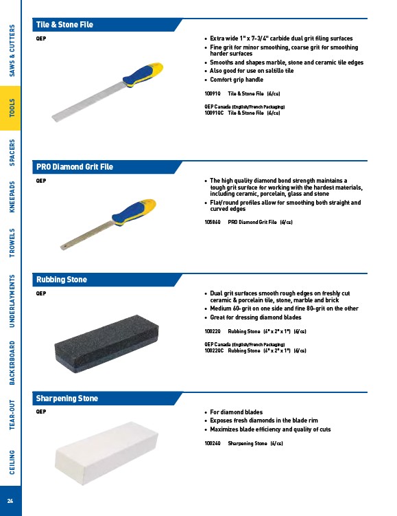 CEILING TEAR-OUT BACKERBOARD UNDERLAYMENTS TROWELS KNEEPADS SPACERS TOOLS SAWS & CUTTERS 24