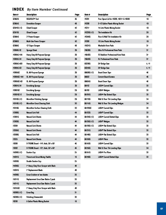 INDEX By Item Number Continued