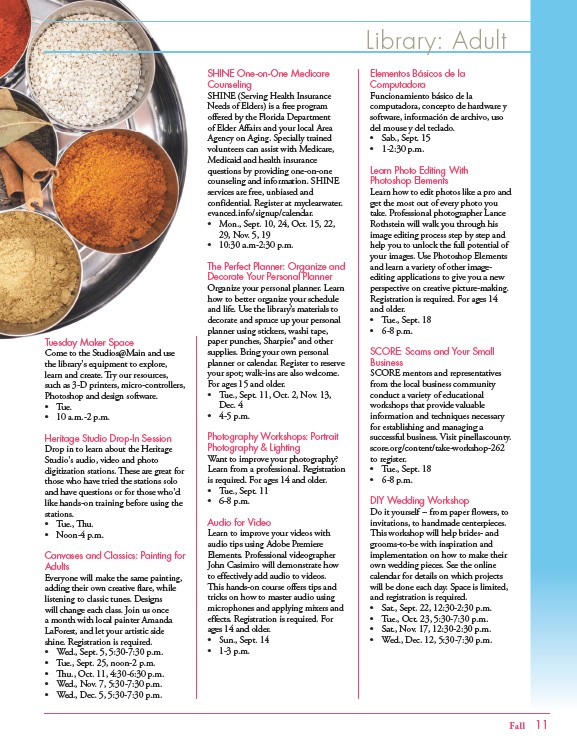• Tue., Sept. 11, Oct. 2, Nov. 13,