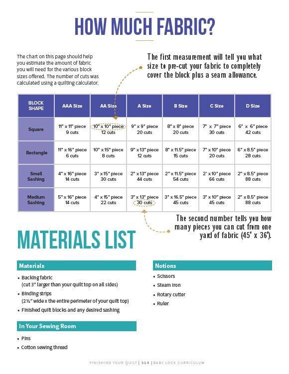 F I N I S H I N G YO U R Q U I LT | 3 1 4 | BABY LO C K CU R R I CULUM