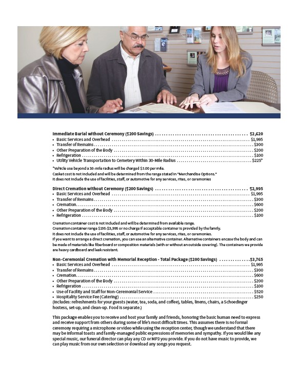 Non-Ceremonial Cremation with Memorial Reception - Total Package ($200 Savings) . . . . . . . . . . . . . .$3,765