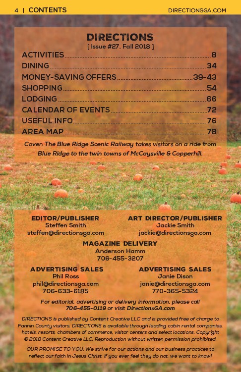 Fannin County visitors. DIRECTIONS is available through leading cabin rental companies,