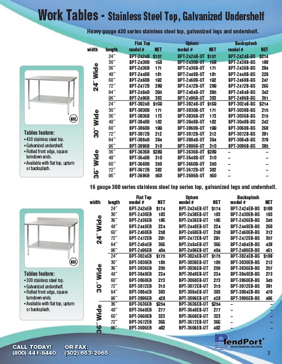 Work Tables - Stainless Steel Top, Galvanized Undershelf