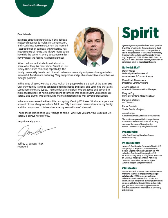 In this issue of Spirit, we take a close look at the people who are a part of the Saint Leo