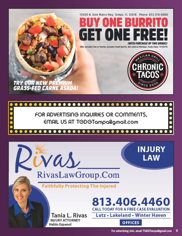 For advertising info, email TGDGTampa@gmail.com 9