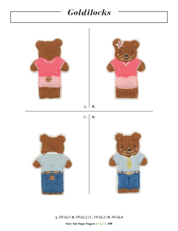 Goldilocks B. D. A. C. A. FP-GL1 | B. FP-GL2 | C. FP-GL3 | D. FP-GL4 Fairy Tale Finger Puppets | | 216