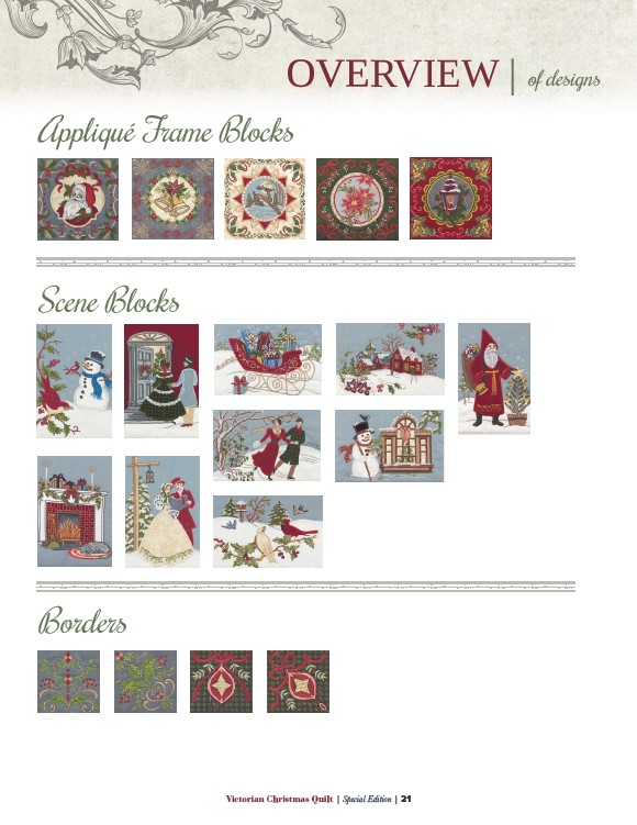 Appliqué Frame Blocks Victorian Christmas Quilt | Special Edition | 21 Scene Blocks Borders OVERVIEW | of designs
