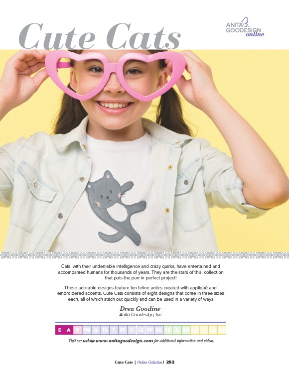 embroidered accents. Cute Cats consists of eight designs that come in three sizes