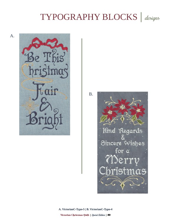 TYPOGRAPHY BLOCKS | designs Victorian Christmas Quilt | Special Edition | 49 A. B. A. VictorianC-Typo-5 | B. VictorianC-Typo-4