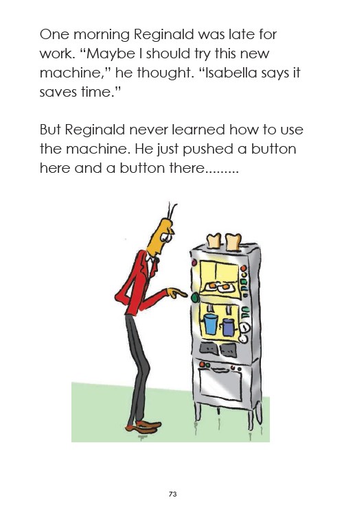One morning Reginald was late for work. “Maybe I should try this new machine,” he thought. “Isabella says it saves time.” But Reginald never learned how to use the machine. He just pushed a button here and a button there......... 73