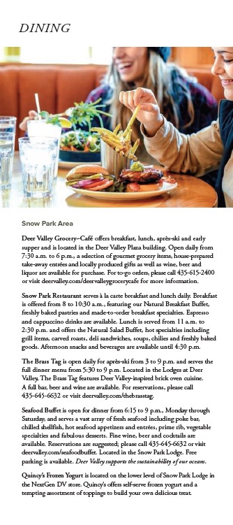 parking is available. Deer Valley supports the sustainability of our oceans.