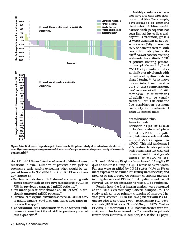 Figure 2. (A) Best percentage change in tumor size in the phase I study of pembrolizumab plus axitinib.