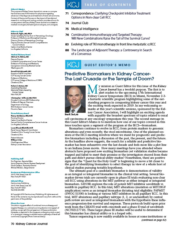 cancer patient advocacy. Kidney Cancer Journal is circulated to